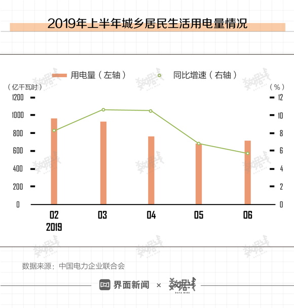 中国电力企业联合会数据显示,2019年6月,城乡居民生活用电量达到718亿千瓦时,较5月份明显回升。同比增长5.7%。