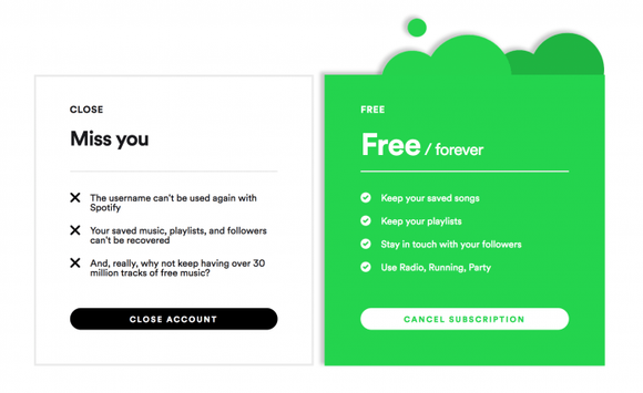 “如果你现在离开我,会让我心碎不已。”——我原本以为这是配偶收到离婚文件时说的话,而实际上,它是网络音乐服务商Spotify在用户取消收费服务后发出的告别信息。当然,这家估值数十亿美元的公司不是真心想跟用户说拜拜。