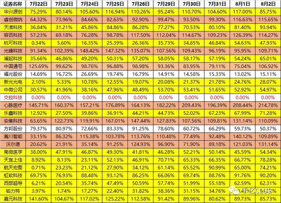 从以上表中数据不难看出,截至8月2日,除了福光股份和方邦股份外的22只融资融券科创板首批上市企业的融券对融资比例都呈现不同程度的上升趋势,其中中国通号,心脉医疗等在内的8家科创板上市公司的当日融券余额已经超过了当日的融资余额。这或许意味着离科创板上市公司股价“打开”,逆转持续上涨的趋势已经为期不远了。