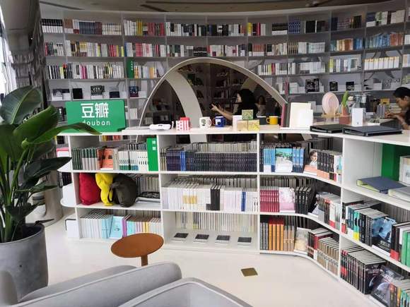 走出文学专区,绿色的豆瓣网logo映入眼帘。豆瓣高分专区的设置颇引人注目,在这里,读者可以看到近千种豆瓣高分图书,其中一百种图书附有已经授权的豆友短评,豆瓣文创产品也一同陈列在专区之内。据介绍,这是豆瓣专区首次进入线下书店。俞挺认为,70后这一代人经历了离不开书店、忘记书店、在网上买书的几个阶段,现在漫步于城市当中,才发现缺失了书店这样的日常生活中的精神性空间,这也是豆瓣空间走近线下的意义所在。