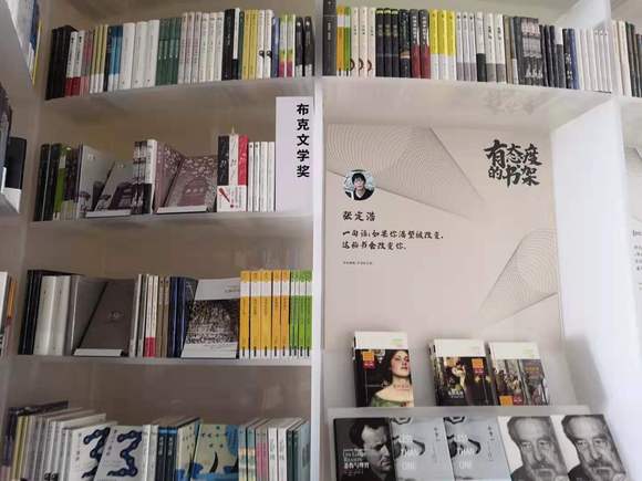 顾客一进入书店便可以看见文学专区,此区按照国籍将各国文学分类,还设有布克文学奖和诺贝尔文学奖专架。引人注意的是,文学专区内陈列着许多 “有态度的书架”。据工作人员介绍,店中共有20个这样的书架,其“态度”体现在由知名作家和学者向读者荐书,孙甘露、陈丹燕、王寅都在此做出了自己的“态度推荐”。孙甘露荐书架上摆放着约瑟夫·布罗茨基的《小于一》与《悲伤与理智》,他也留下了自己的阅读寄语:“文学评论帮助我们获得更宽阔的视野,借助古今中外的研究成果,更精微地阅读、理解文学、理解我们所处的时代。”临近孙甘露书架的,是朵云书院设计师俞挺的荐书——彭慕兰的《贸易打造的世界》和李硕的《南北战争三百年》。