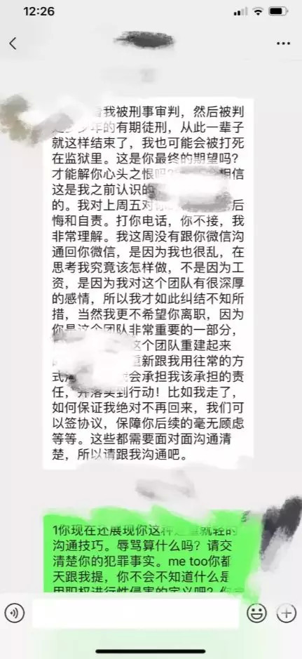 尽管事后H主动离职,但对饱受精神折磨的受害者来说,又有什么用呢?
