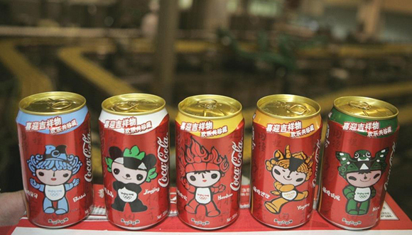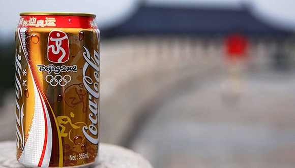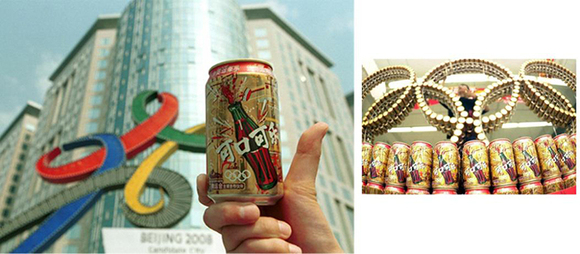 2001年7月13日,在国际奥委会从莫斯科向全世界宣布北京成为2008年奥运会主办城市的同时,可口可乐立即启动生产线,一个小时后,一种以“为奥运牵手、为中国喝彩”为主题的全新金色限量申奥成功纪念罐已经出现在北京街头。