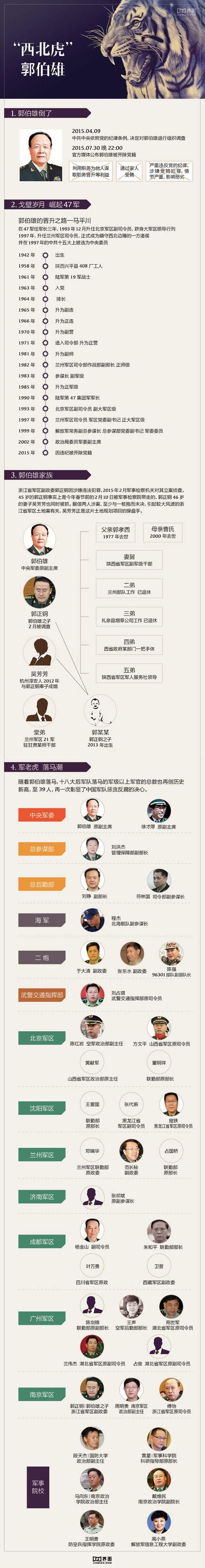 “八一”前夕,原中央军委副主席郭伯雄被开除党籍,移送军事检察机关依法处理。历年来,都有哪些“军老虎”落网?