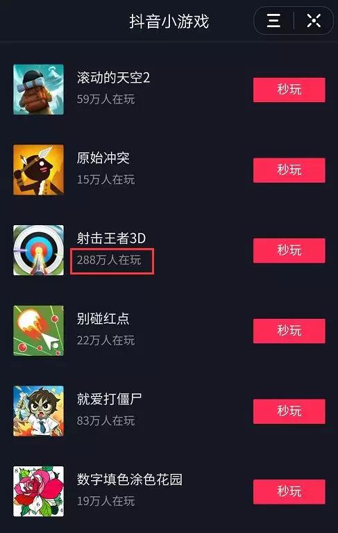 二、“抖音小游戏”悄然发力,已有超391款游戏,单款游戏近300万人在玩