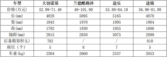 配置:大切诺基=途锐>途乐>兰德酷路泽