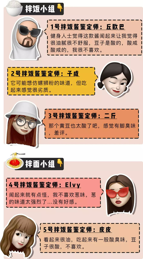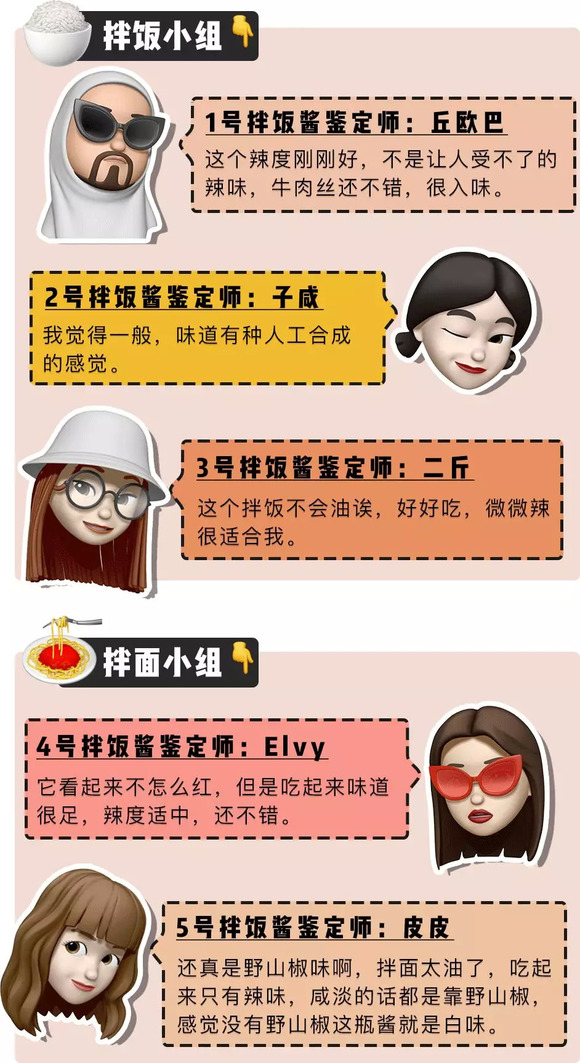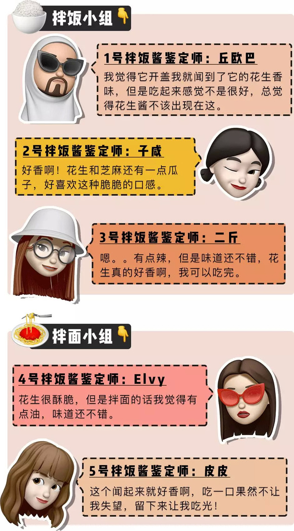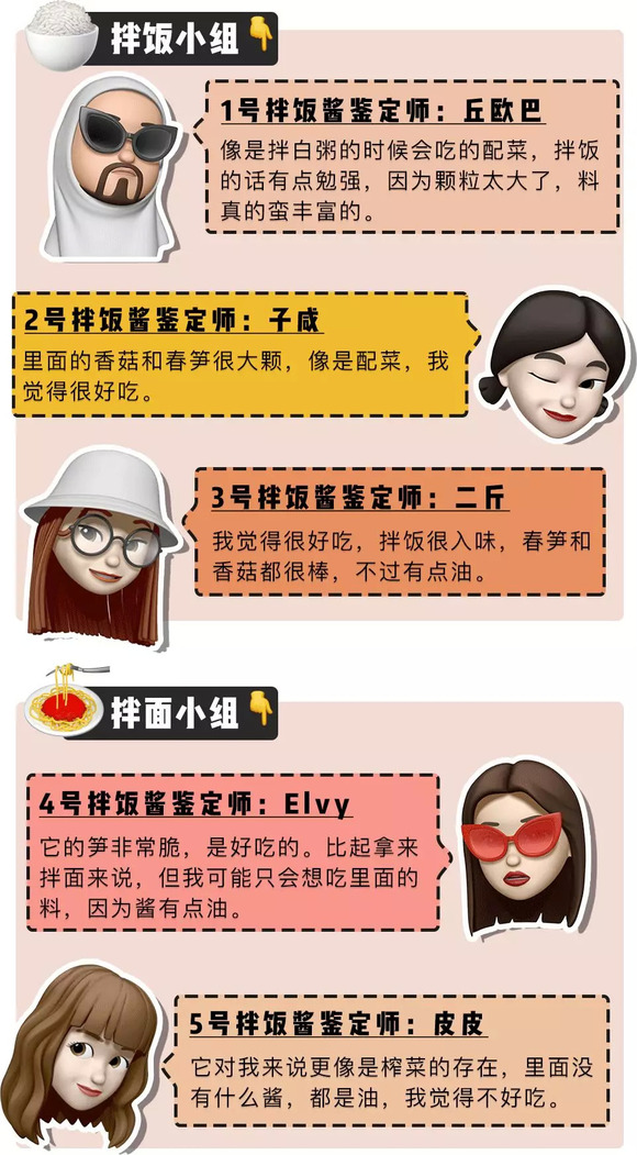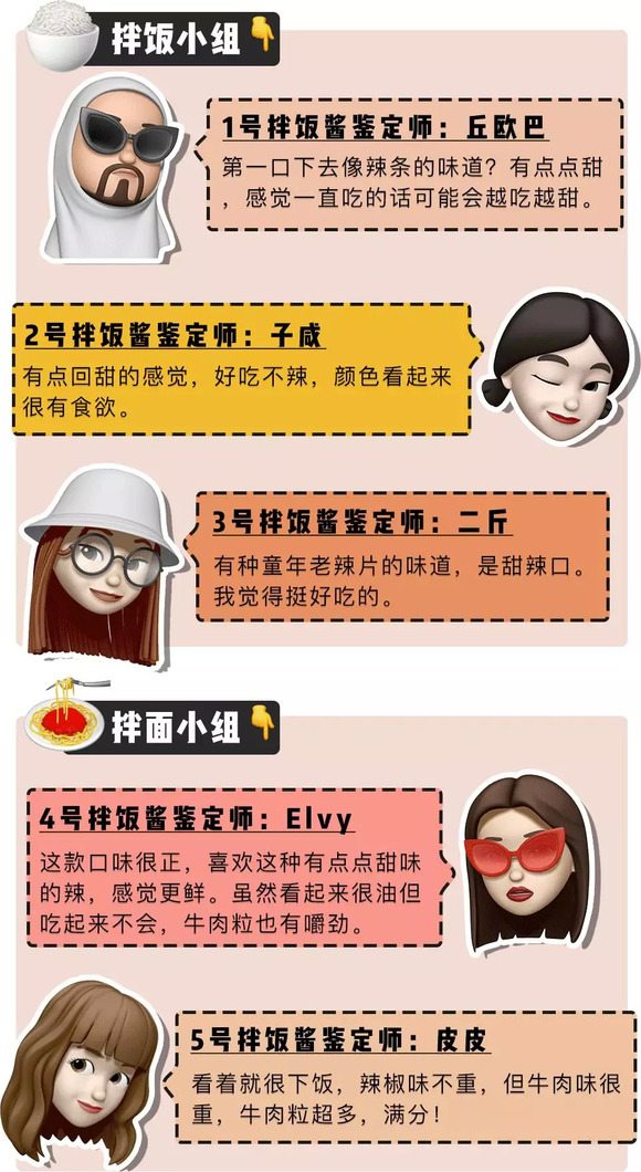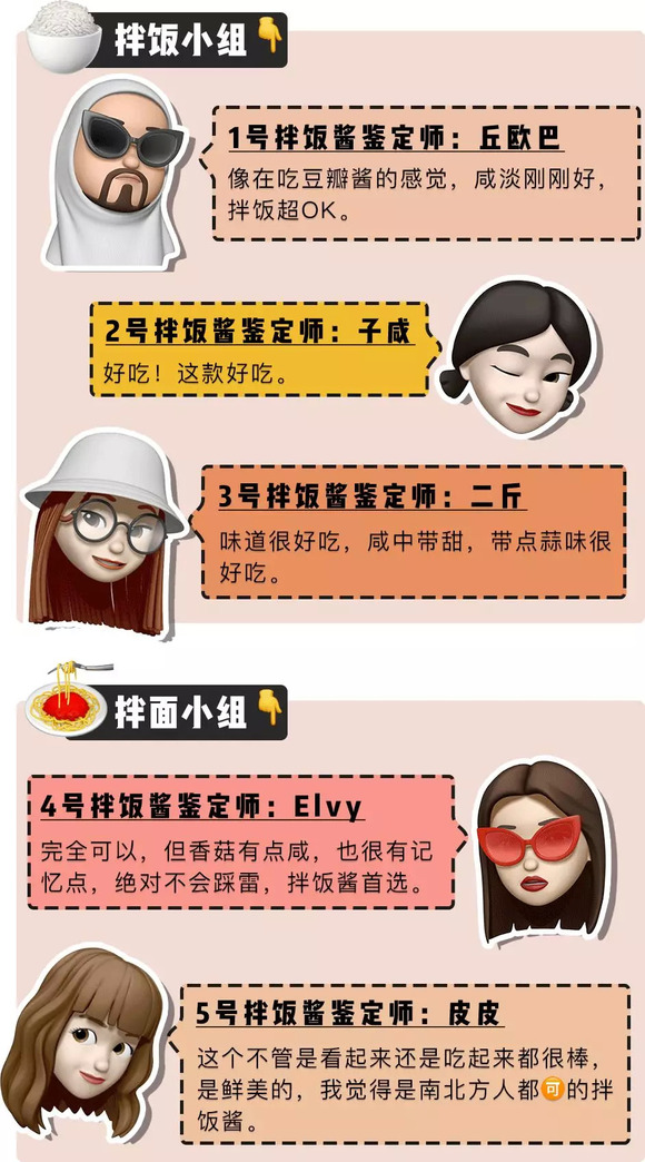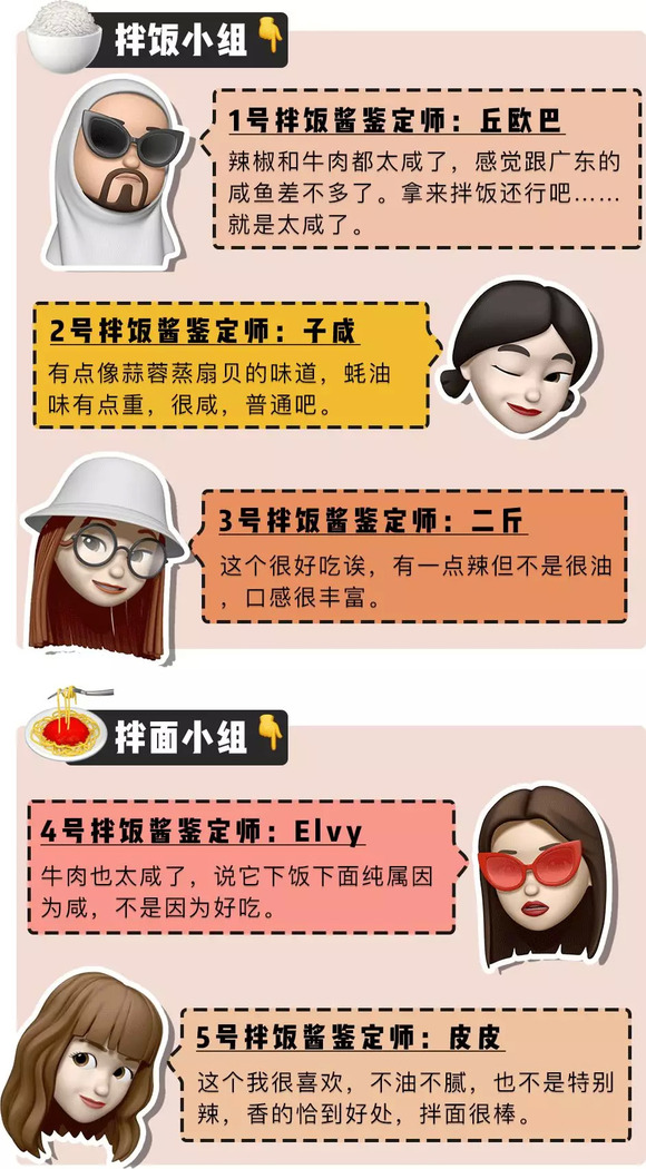 同时热烈欢迎这次参与测评的「深夜测评团」,天南地北的人士都有。平常吃饭也热衷掏出拌饭酱搭配的吃货们