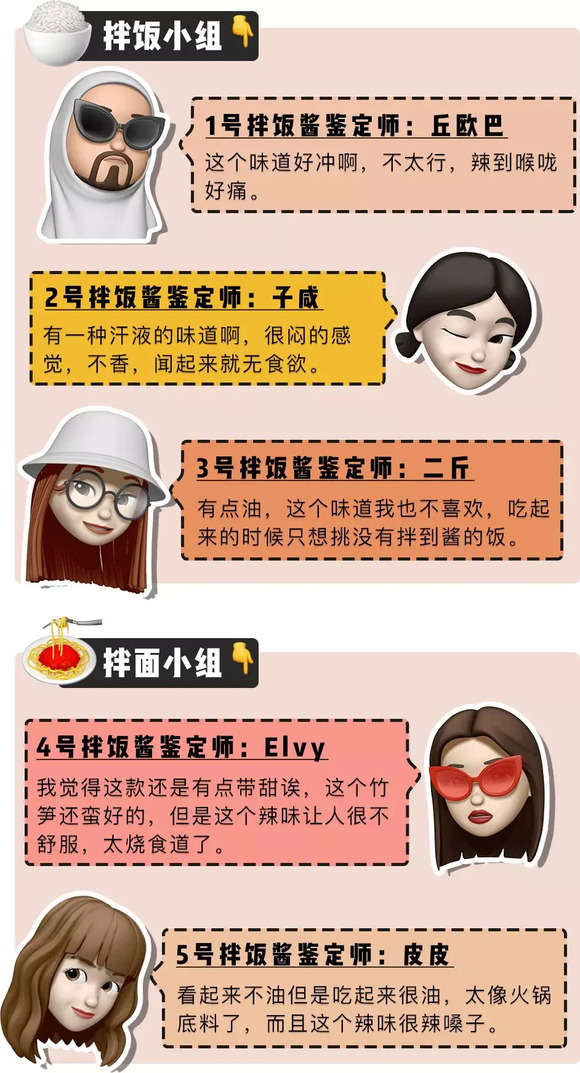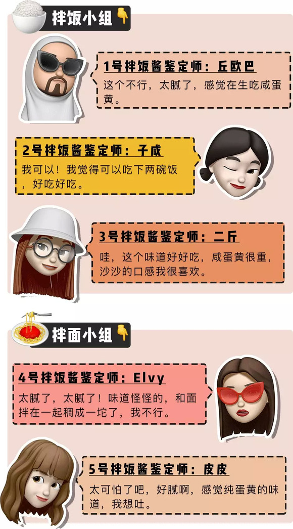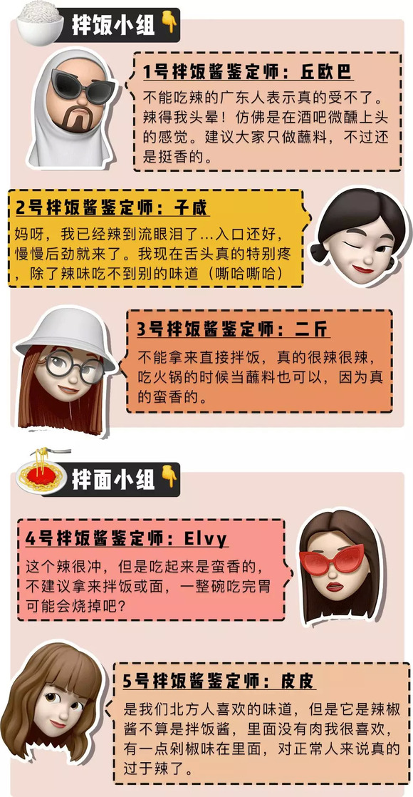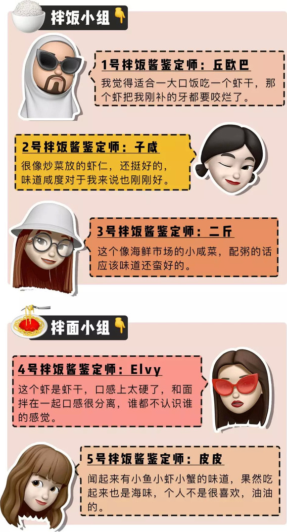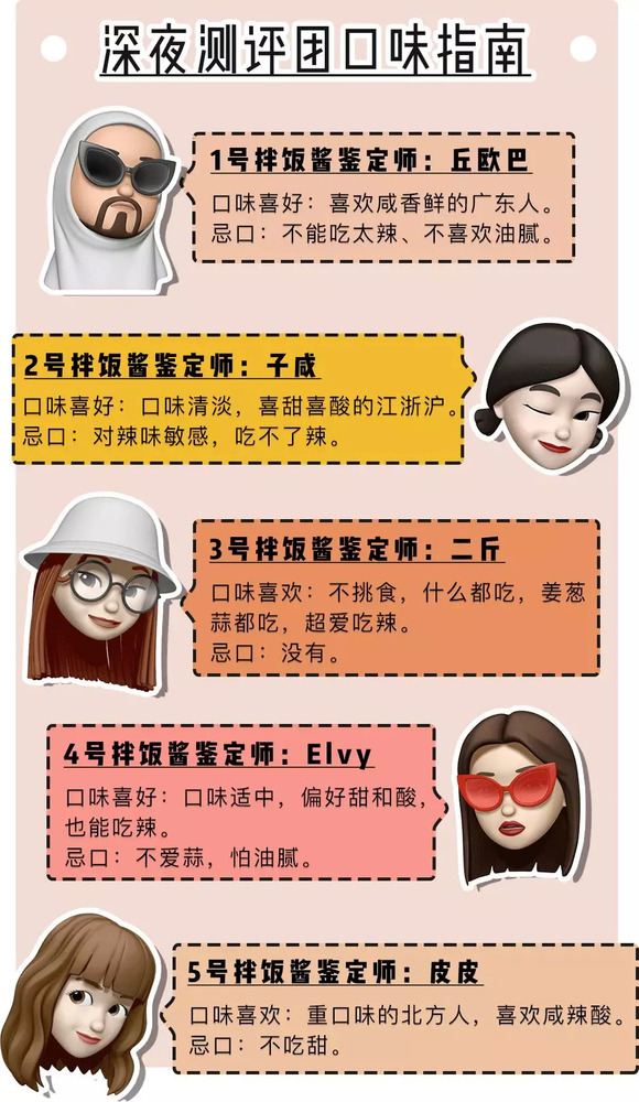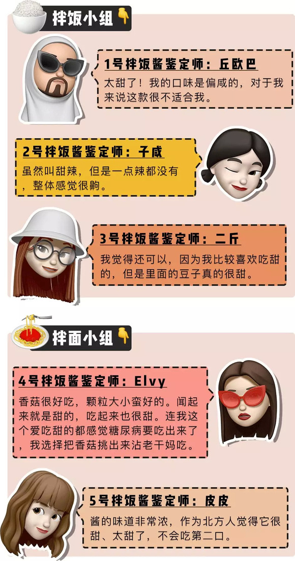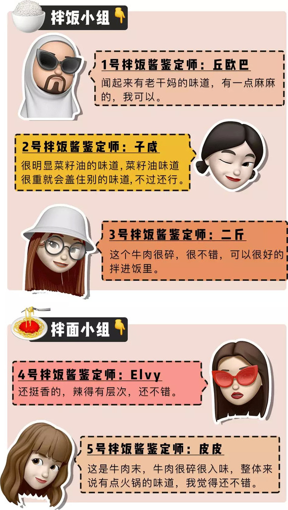 同时热烈欢迎这次参与测评的「深夜测评团」,天南地北的人士都有。平常吃饭也热衷掏出拌饭酱搭配的吃货们