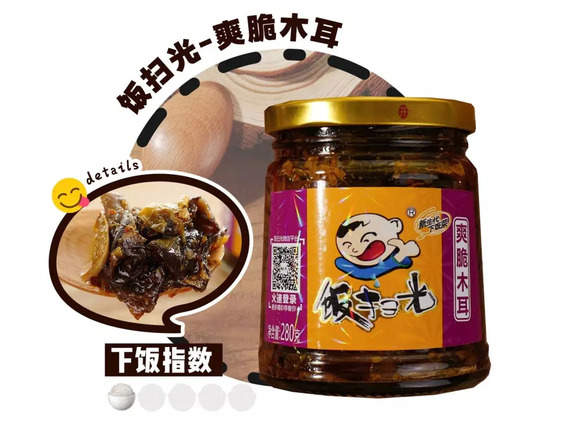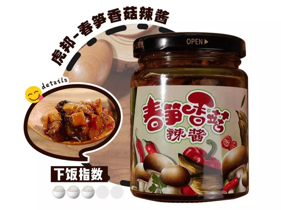 曾和大小爱吃深度合作的拌饭酱,号称一勺就能干掉一碗饭,精选真材实料的大颗粒香菇,饱满有嚼劲,辣劲恰到好处可口开胃,想怎么拌就怎么拌,妈妈再也不担心我不按时吃饭!