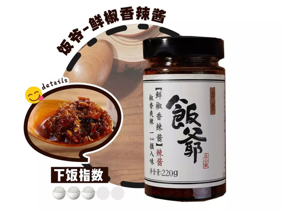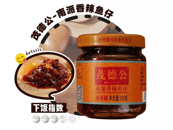 一款能当日常零嘴的拌饭酱,满满深海车公鱼仔充斥着独有的海鲜香气,香中带辣,辣而不爆,爽口开胃越吃越上瘾,搭配各种美食都绝不突兀,是你饭桌上最最忠实的伴侣