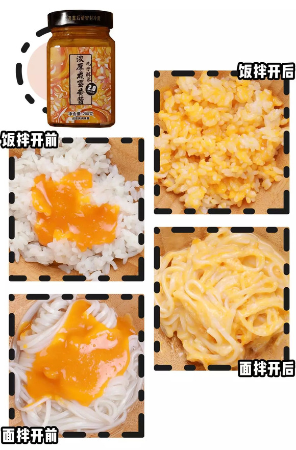 官方显示这是一款吃货的口碑酱料,此款蛋黄酱有十三颗鲜红流沙咸蛋黄,经过烘烤研磨之后制成,好的鸭蛋黄出油出香并且没有腥味