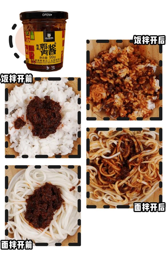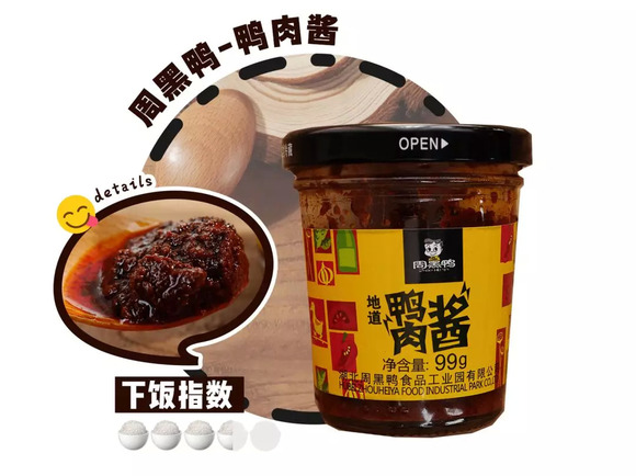 周黑鸭风味酱里采用的是周黑鸭货真价实的鸭肉粒,刚入口有点辣但细细品味后辣中又透着一丝丝甜,醇厚的酱香四溢是舌尖上的独特享受