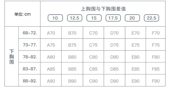 ▲不同品牌的内衣码数会有差别,此表仅供参考