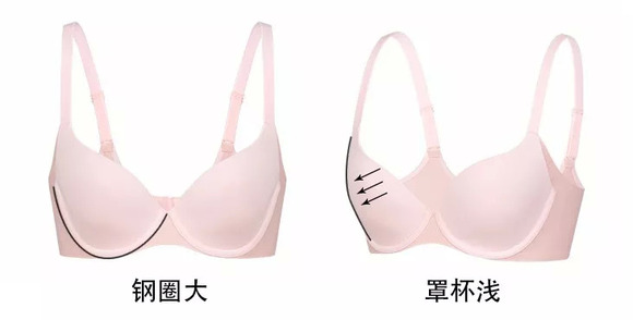 过大的钢圈会让内衣失去承托力,容易下垂;