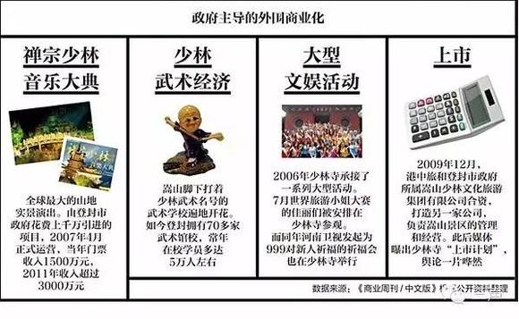 “其实少林寺根本就没有特别主流地参与到商业中去,更主要是在宣传少林文化。”李阳泉说。少林寺的困局在于,它走出去的每一步,往往都被冠以商业化的帽子,人们只关注它从中得到哪些利益,而远非它的苦心,“师父是一个拥有大智慧的人,如果你真的交给他一个公司,他一定会运营得很好,但他并没有把少林当公司来运营”。