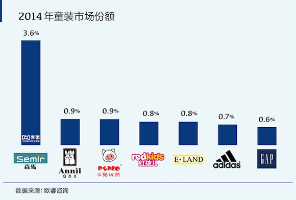 以一直占据中国童装市场份额第一的森马为例,2014年森马扩张了它的童装产品线,并增加了门店内的童装陈列空间。而这些商业决策,都是基于对中国童装市场未来发展的积极预判。 2014年,森马的童装业务市场份额高达3.6%,远高于排名第二位的0.9%。
