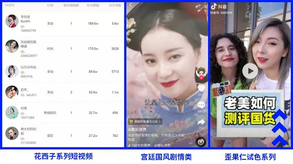 基于这样的定位,花西子在抖音上的视频风格比较统一,常见的有古风/宫廷剧情,还有一类就是请垂直KOL找外国小姐姐试色,或者找国外面孔KOL做推广。这两类视频很好的给到消费者国风的定位移情,以及“外国人年轻人也喜欢花西子”从而唤起的民族自豪感,转而变成对产品的信心与喜爱。