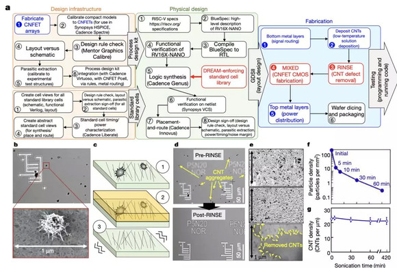 在这项工作中,作者克服了固有的CNT缺陷和变化性,成功制造出超越硅的现代微处理器:RV16X-NANO,其设计和制造完全使用碳纳米管晶体管。