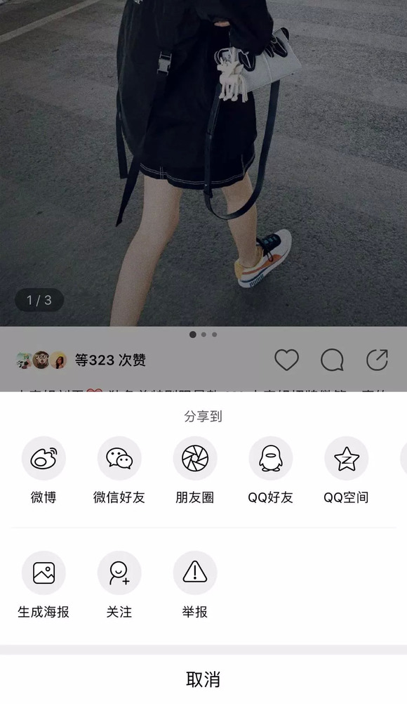 具体细节上,绿洲的首页通过关注/推荐关注,以feed流形式呈现内容信息,单图占图片位,左右滑动切换图片,下方置点赞、评论、分享tab。点击分享,目前状态可分享至包括微博、微信、QQ三大平台,并添加与微博相同的生成海报功能。同时在分享页面底部置入了关注功能,意在进一步引导用户关注博主。