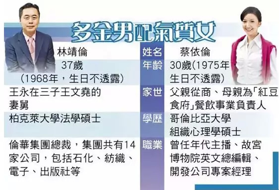 ▲台湾知名名媛和总裁丈夫在各方面的匹配情况