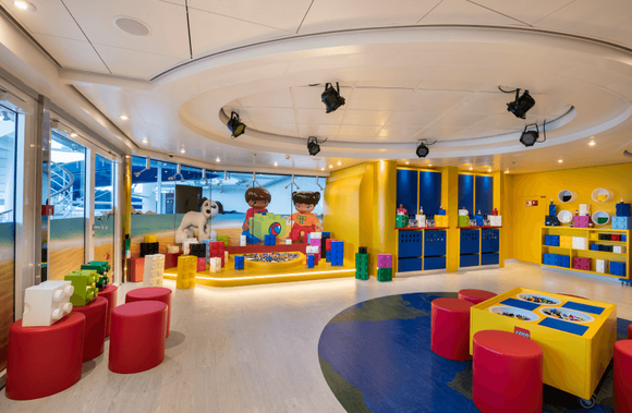 不可否认的是,辉煌号上的一些体验内容和娱乐项目的确会更侧重亲子家庭。首先在体验方面,户外泳池和乐高乐园是小朋友们最爱的地方,按照大多数家长的说法,“孩子只要能玩水就很开心了。”乐高乐园的吸引力当然也让孩子们在船上玩得不亦乐乎。