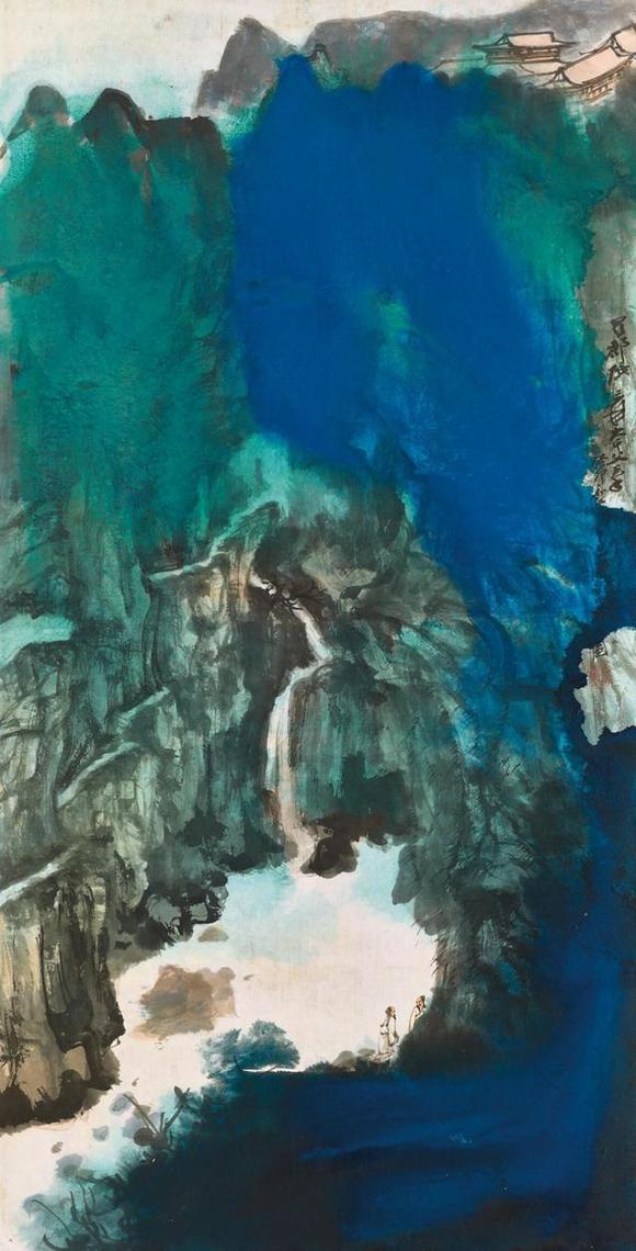 此幅《灵岩山色》写于1981年,时张大千83高龄,居住在台湾摩耶精舍中。