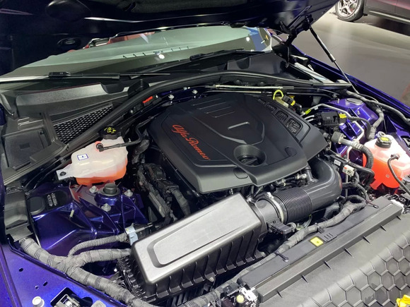 场地试驾中,Giulia精准、细腻、灵活的操控令人赞赏,甚至会让人难以相信这是台四门轿车的表现。打开机舱,呈现的细节印证了它的运动属性——强化型避震上座(铝制)、横向加强杆、水冷式涡轮增压器(独立散热系统)等等。其他看不见的细节还包括:大量铝制部件,碳纤维传动轴。后者对减轻重量、提升传动效率起着重要作用。