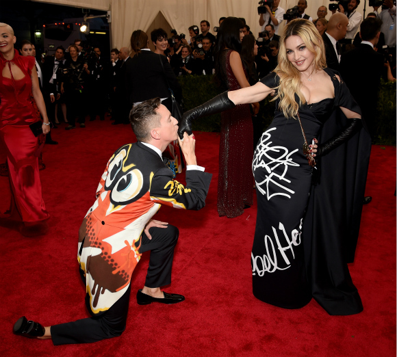 当然,他们也是有专业合作的。麦当娜在今年5月4日举行的2015纽约大都会艺术博物馆慈善舞会(Met Gala)上就身穿由设计师Jeremy Scott设计的Moschino定制礼服。