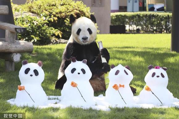 临近国庆70周年,2019年出生的大熊猫宝宝参与了一项庆祝活动。 图片来源:pandapia