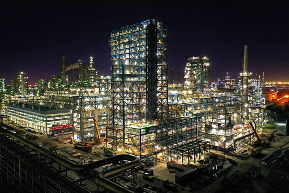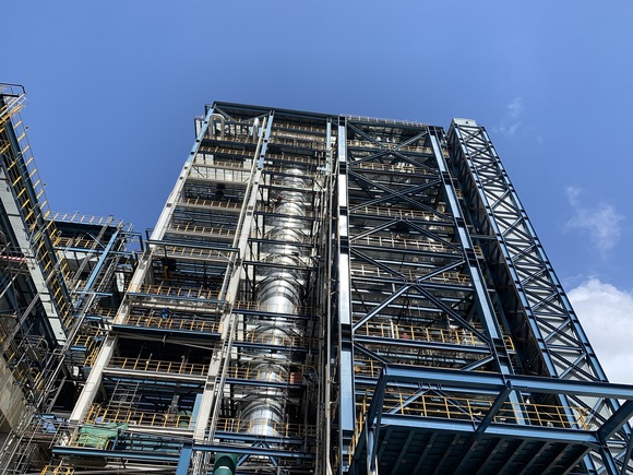 这座装置高度超过70米,相当于20多层楼高。9月10日,该装置正式完成中交,意味着建设单位已完成工艺运行线路上的所有建设,整体进入收尾阶段。