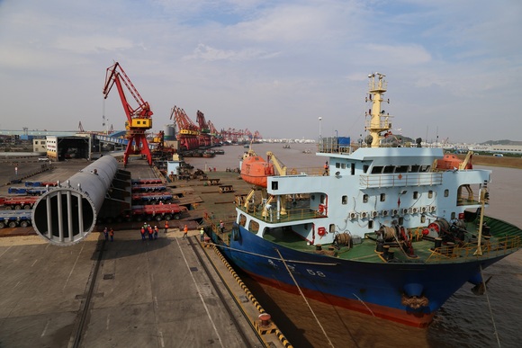 此前,长江航道上最大起吊能力为1700吨,由国机重装镇江公司两台起吊能力为850吨的行车合力组成。