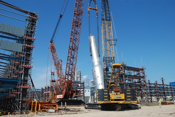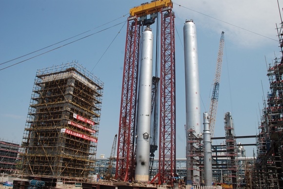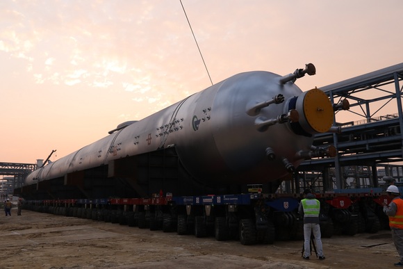 该装置内两个反应器重量均超过2400吨,创造了全球最重反应器的记录。