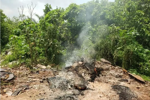 垃圾在马来西亚某树林里被焚烧