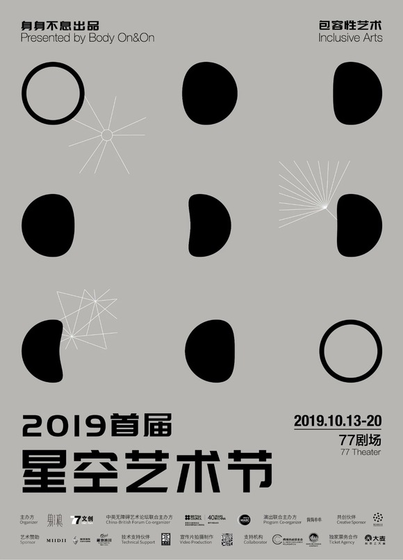 国内首个以“包容性艺术”(Inclusive Arts)为主题的2019年首届星空艺术节即将开启,艺术节包含了“中英无障碍艺术论坛”、残障艺术家为主导(Disability-led Arts)的演出、共生融合系列工作坊、原生艺术作品展览四个部分。该艺术家旨在向社会机构、普通大众以及残障群体共同倡议“包容”的价值,为本土残障群体的艺术表达,提供平等的发展机会与展示平台,共同分享这个世界充满多样性的现实。