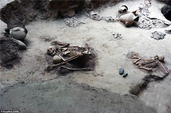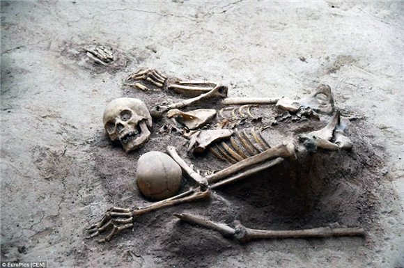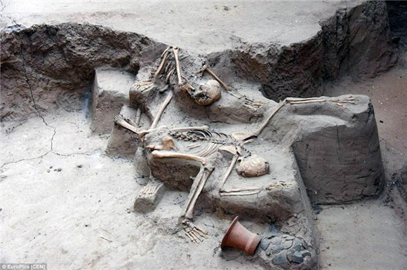 可以想象当时的地震有多惨烈——有的遗骨以怪异的姿势趴在地上,有的好几个人蜷缩在一起。