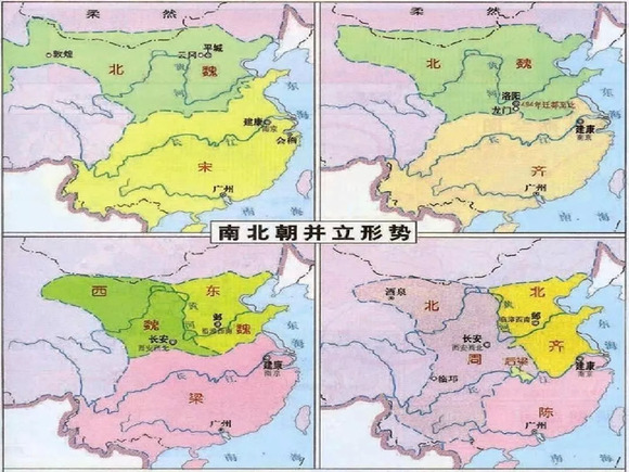 受地缘政治的影响,公元四至六世纪的中国南北以江河为界,划而分治。