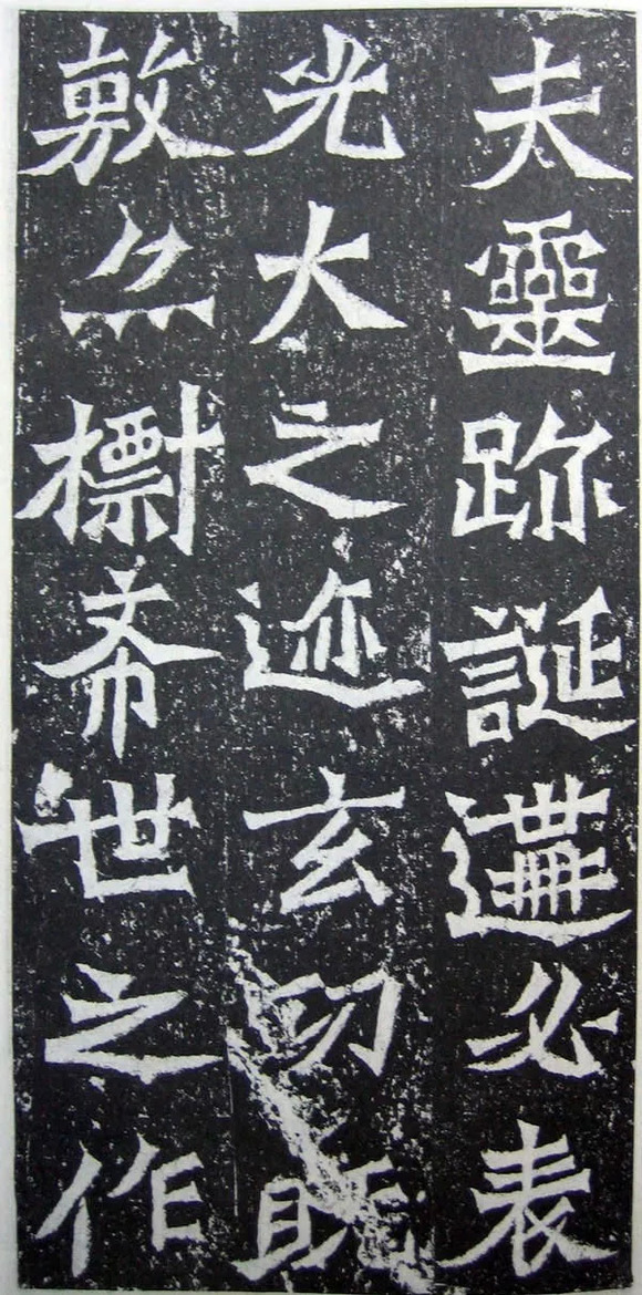 在结字上依然取力外拓,有明显的扩张表现感,并延续了隶书横向取势的特点,结体宽绰方整,刀口棱角分明。