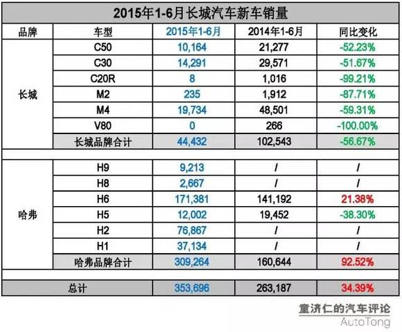 长城汽车的销量数据中充分体现出长城在轿车业务上的“断臂”,上半年长城品牌销量下跌56.67%,主力轿车产品C50和C30月均销量已降至2,000辆级别,而去年同期月销量8,000+辆的M4在价位与定位均相近的哈弗H1上市之后,今年销量下跌近60%。长城品牌车型整体销量占比已从去年同期的38.96%锐减至12.56%。