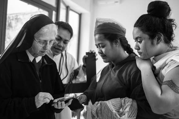 2015年,我开始了一项后来成为长期项目的工作——探索罗马的耶稣和玛丽圣心修道院(Holy Hearts of Jesus and Mary)修女们的生活。我的兴趣主要在那些过着“激进”生活人的故事上——她们决定脱离传统标准的生活,选择完全不同的生活方式。我在老家罗马附近散步的时候,经常看到修女们的日常生活。虽然这是那里常见的景象,但毕竟还是在修道院的围墙后不为公众所见。修女的生活需要什么?她们在修道院里的生活是什么样子的?罗马有超过750个女性宗教机构,这里正是找到这些问题答案的理想地点。