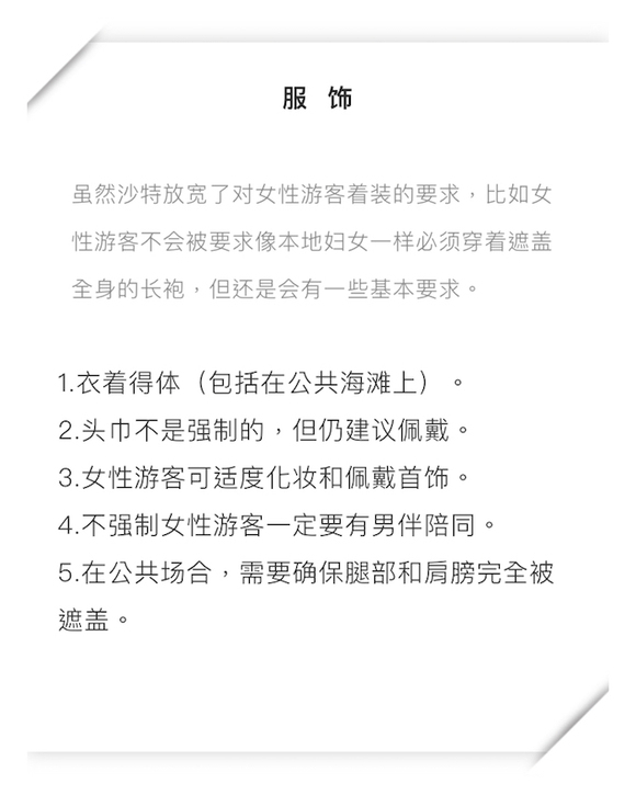 和其他目的地概览不同,介绍沙特这一篇时,我们决定把行前准备放在最前。沙特其实是个很特别的国家,由于伊斯兰教及其文化的特殊性,来这里旅游前,你首先要了解的或许不是有哪些好玩、好吃的地方,而是如何能得体、不出错的感受沙特的美。