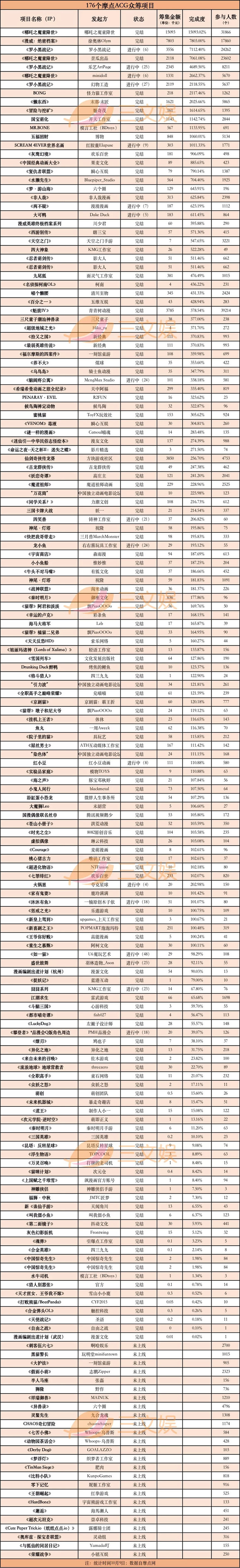 在这次统计的176个ACG众筹项目里,单款产参与人数最多的是动画电影《哪吒》里的哪吒手办,188元的单价,购买人数高达16029人次 。仅这一个众筹项目的众筹人数和金额,就超过了统计中90%的项目。
