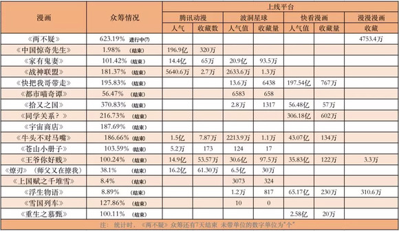 漫画作品在漫画平台的数据以及众筹完成度