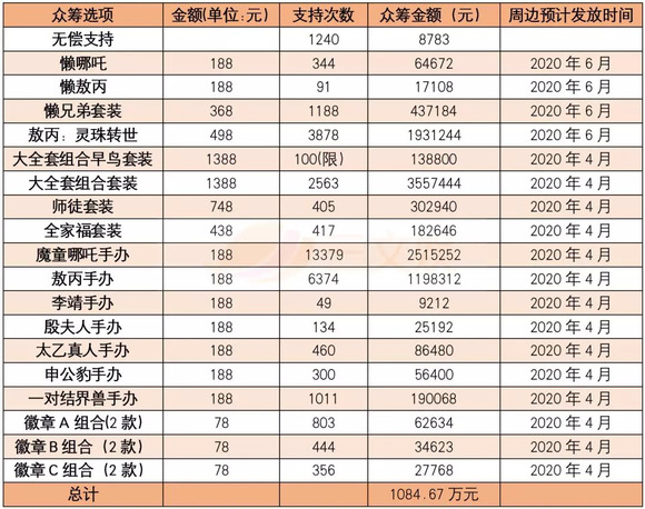 早在8月27号,这众筹进行到一半的时候,哪吒手办的支持人数就已经超过了1.3万,敖丙紧随其后。不是主角标价同样为188元的结界兽,也有超过1000人购买。