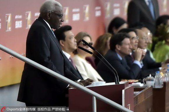 按照惯例,国际田联主席、已经82岁的迪亚克先生进行了致辞,他盛赞北京奥运会无与伦比同时,相信本届比赛一定会圆满成功,他说,“2008年奥运会在鸟巢举办,是无与伦比的,博尔特奉献了3项纪录,我们见证了这位最伟大的田径明星诞生 。今天全世界的目光再次聚焦鸟巢,将吸引200多个国家和地区参赛,世锦赛仅次于奥运会和世界杯的第三大赛事,我们相信中国将为世人贡献一届盛事。”