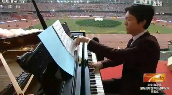大帅哥、钢琴王子李云迪也来了。开幕式以“乘梦飞翔”部分,他通过钢琴展示了自己的才华,展示了中国青年人的奋斗精神。开幕式结束后,李云迪接受采访时表示,第一次在鸟巢演奏非常振奋和自豪。他说,“本次演奏的曲目主题为《乘风飞翔》,以钢琴协奏搭配现代的电声音乐,与美洲、非洲和亚洲等各大洲的电音团队合作,非常富有激情,很适合今晚开幕式的气氛和运动的精神。”