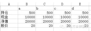 我们现在先假设,有一家从来不分红的公司,我们有a b c d 四位股民朋友,他们各打中了新股500股,价格是20,每个人给上市公司圈走10000元,上市公司圈钱抽走共计40000元。每位投资者手上还有10000元现金在手上,也就是传说中的“子弹”。