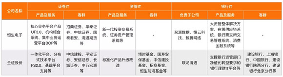 表3 :恒生电子和金证股份的证券IT、资管IT及银行IT业务分布不完全统计