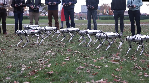 日前,麻省理工学院公布了一段全新的视频,九台四足机器人快速行进,在草地上打滚摇晃,小幅跳跃前进,俨然是一群可爱的宠物狗。