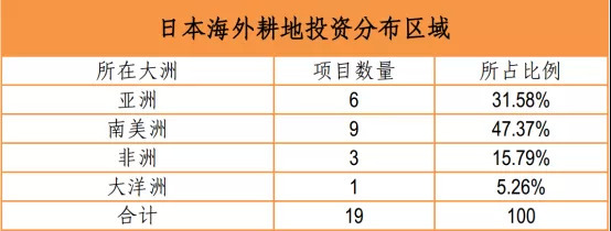 (日本海外耕地投资分布区域)