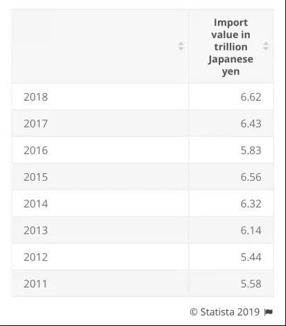 (图:2011-2018日本农产品进口总额)